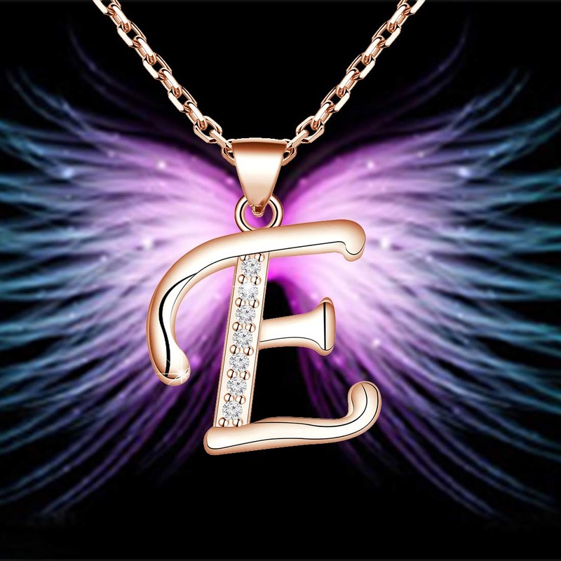 CHOORO Dainty Script Rose Gold Initial Necklace 26 Alphabet Letter Pendant Zircon Necklace Name Necklace for Women Girls Bridesmaid Jewelry Gift (E -necklace)