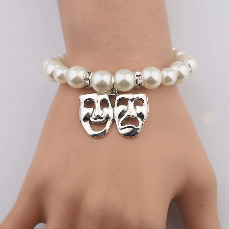 - Stylish Design❤ Mini comedy tragedy mask. Anyone who love theater will love the delicate pearl bracelet.