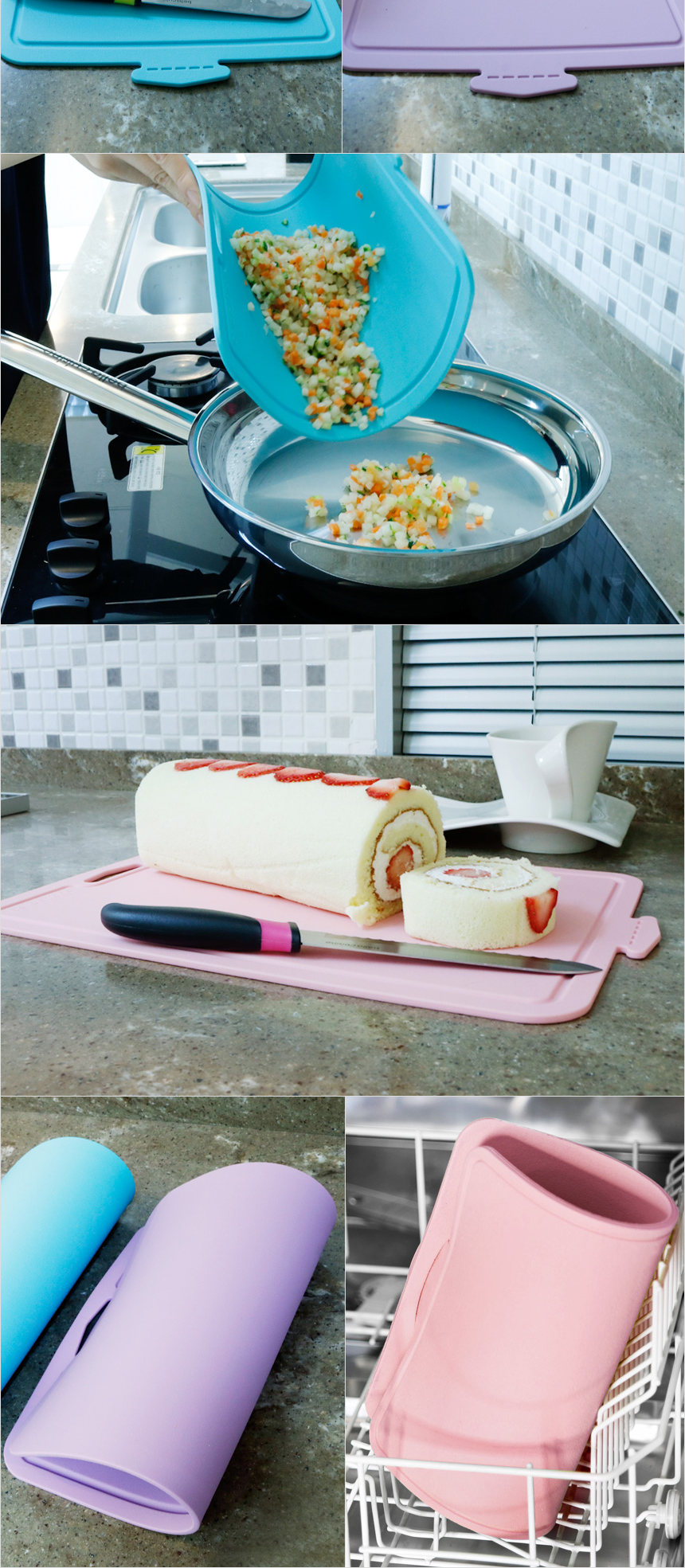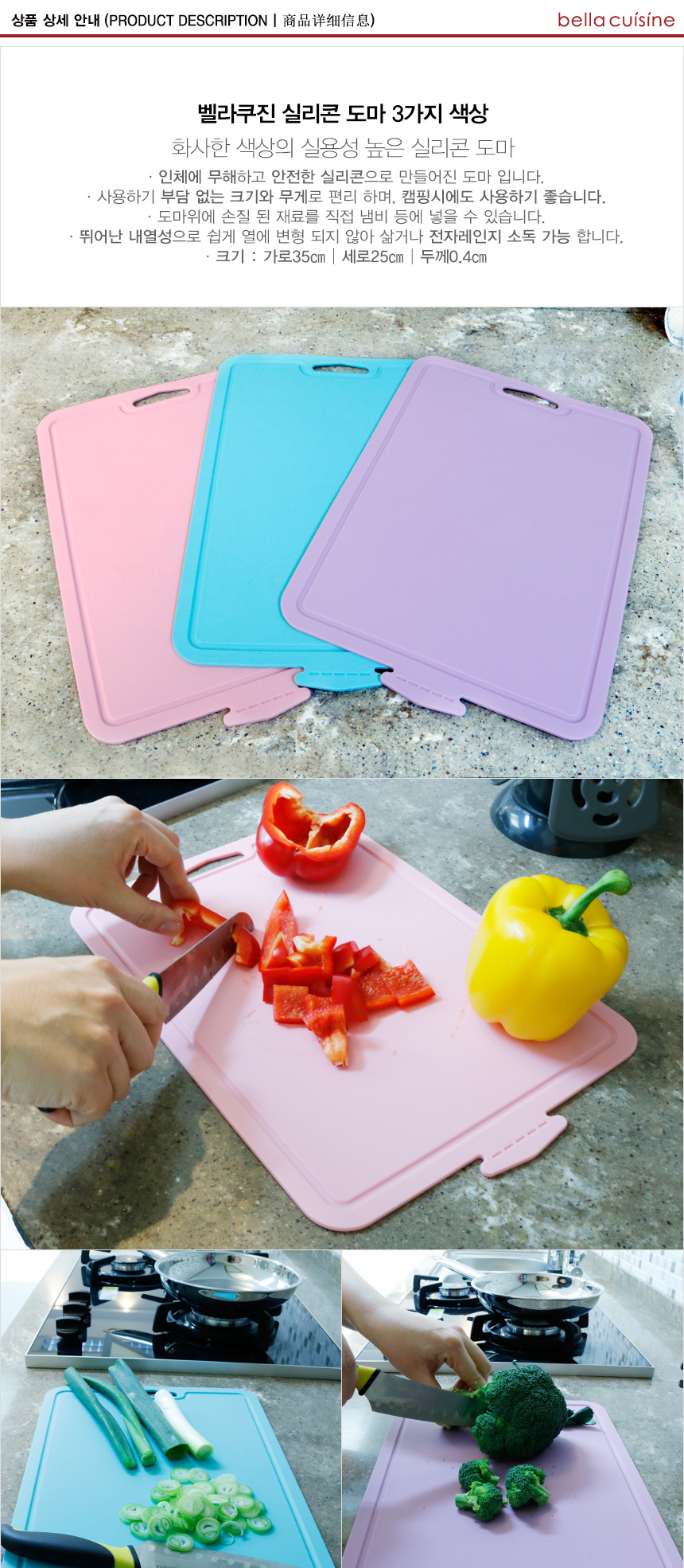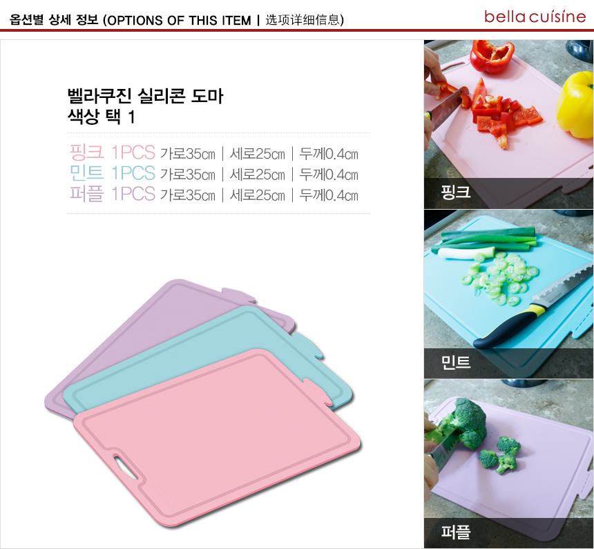 Choose from 3 silicone cutting board colors, easy to sterilize / 실리콘 도마 3가지 색상 중 택1 간편소독가능