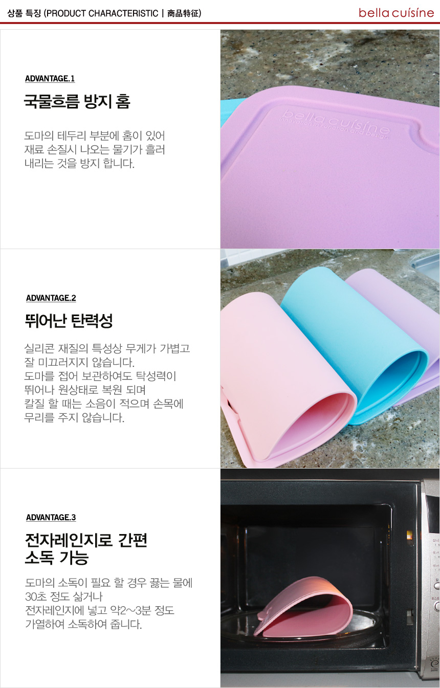 실리콘 도마 3가지 색상 중 택1 간편소독가능