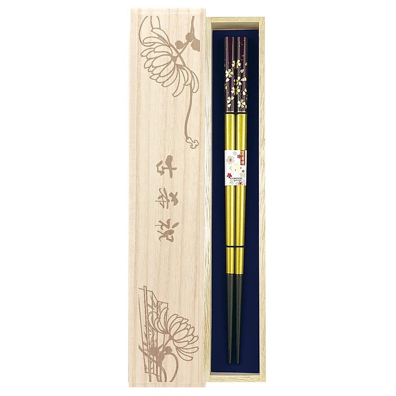 Chopsticks, Kinmai Cherry Blossoms, Purple, Dishwasher Safe, Unisex Size, Includes Paulownia Box, Wrapping, Paulownia Paulownia Box, Present, Gift, Grandpa Grandma (42)