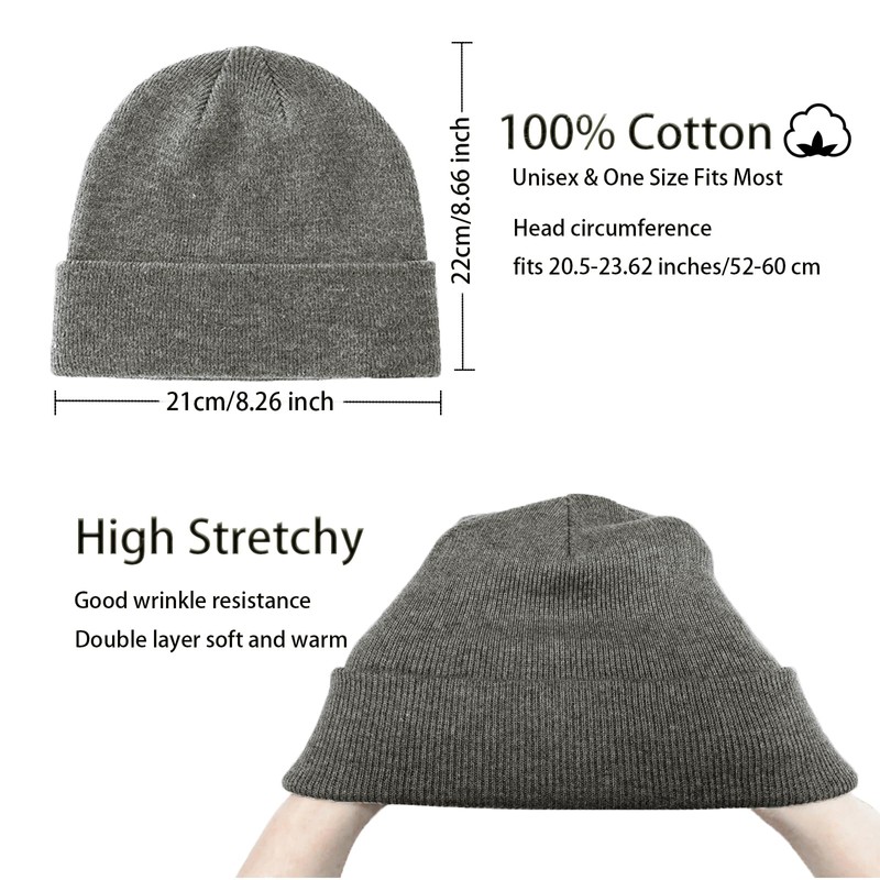 • 100% Cotton:Unlike synthetic fabric beanies,cotton beanie for men women made of 100% organic cotton;The material is natural and non-allergenic;Non-itchy,scalp friendly,double layer design,warm and unburdened,breathable,suitable for year-round use