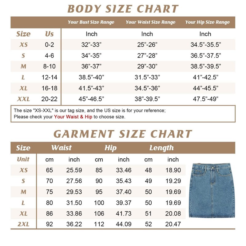 (2)This denim skirt comes in US Size. Please use the following guide to determine your size.