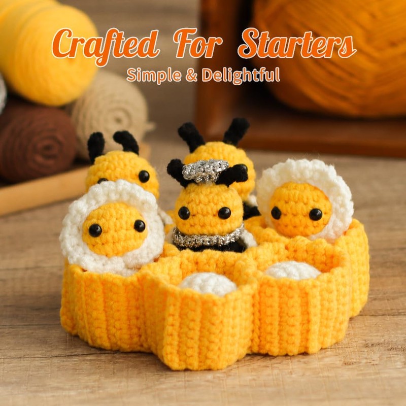 - Beginner-Friendly Bee Crochet Kit ◆ Tailored for novice crafters, this all-in-one set features premium yarn, essential tools like a 2.5mm crochet hook, safety eyes, and dual tutorials—empowering beginners to master crochet skills with confidence