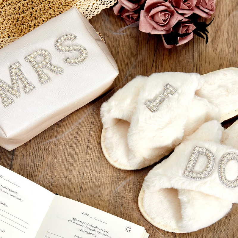 - Versatile Bride Accessories for Special Moments: From bridal showers to the wedding day, this bride to be gift set ensures she feels special and pampered. The "MRS" cosmetic bag and "I Do" slippers are must-have accessories for her wedding journey and beyond! 🎁