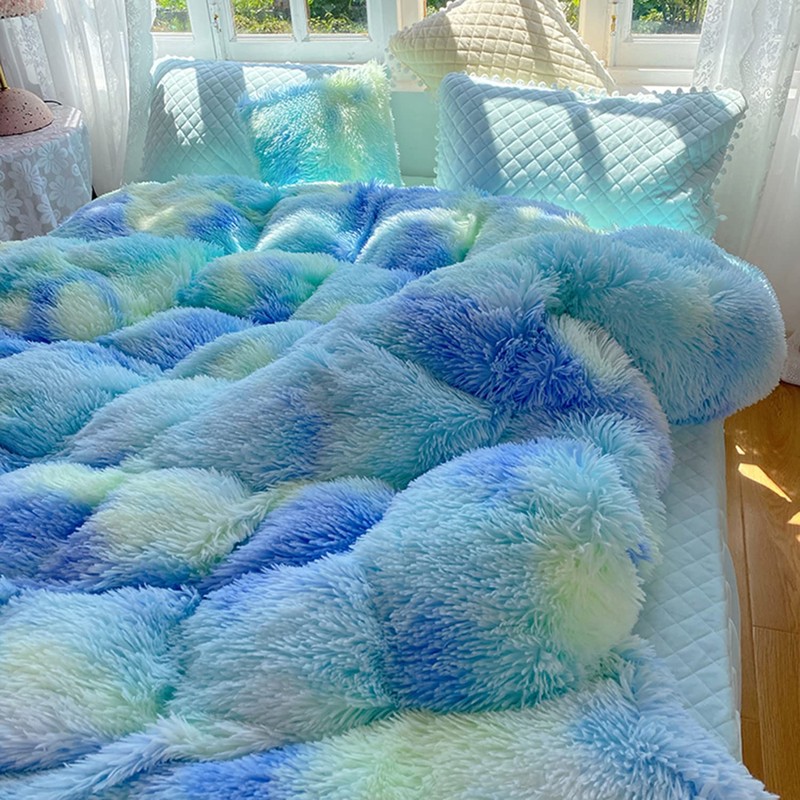 - Product Materials:The front of the comforter and pillowcases are made of plush. The back is made of crystal velvet, filled with rain cotton, very soft and warm.