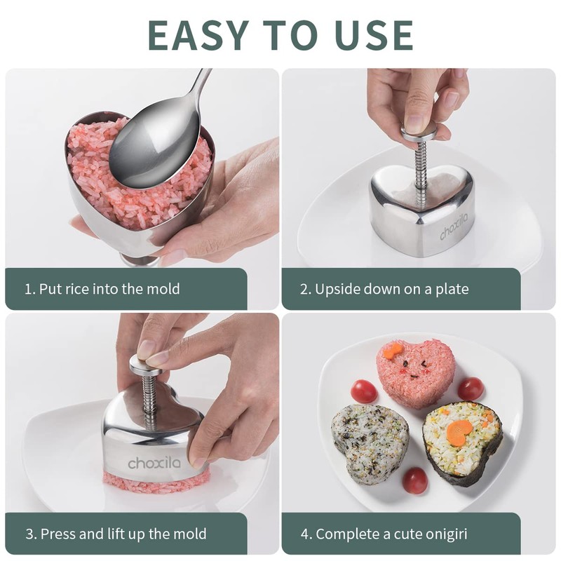 choxila Stainless Steel Onigiri Molds(Triangle+Heart-Shaped)