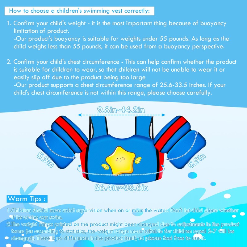 Chriffer Swim Vest for Kids 30-60 Lbs Girls Boys Life Jacket Puddle Jumper with Double Security Buckle Floaties for Toddler from 2,3,4,5,6,7,8 Years Old Children