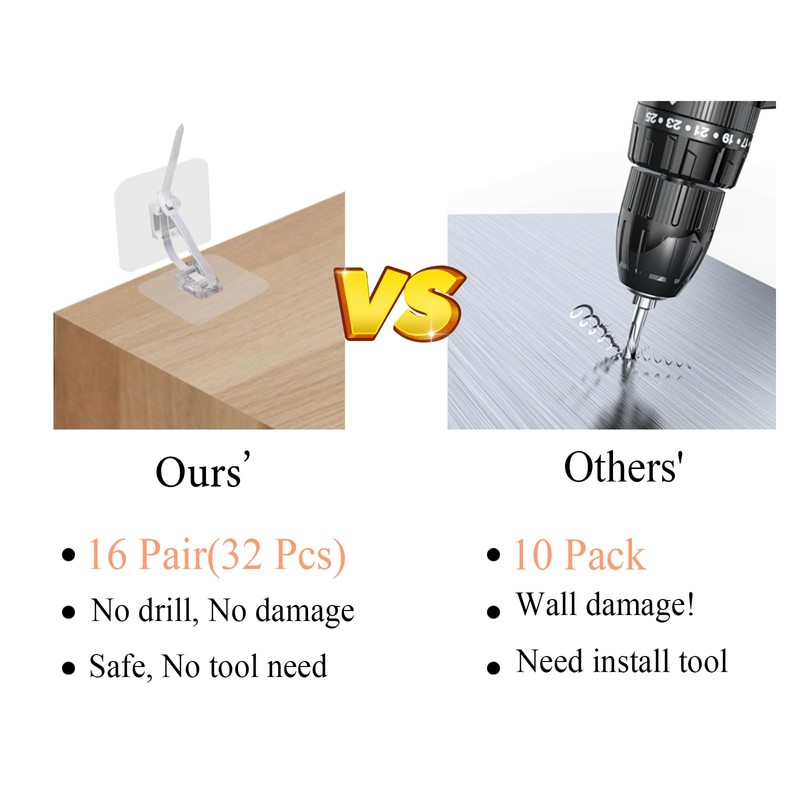 Drill-Free installation: Enjoy hassle-free setup with our no-drill wall anchors, ensuring home safety without damaging your walls. Simply clean the surfaces, peel off the protective film, firmly attach the anchors, and tighten the straps for a secure fit. Rest assured, our anchors leave no sticky residue upon removal.