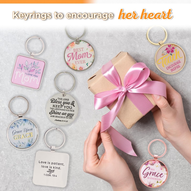 - Christian Art Gifts Inspirational Scripture Keychain in Tin for Women: Grace Upon Grace Inspirational Bible Verse Accessory for Keys, Keyrings, Backpacks, Blue