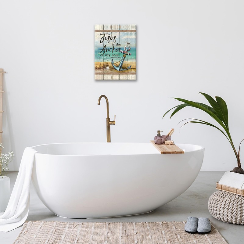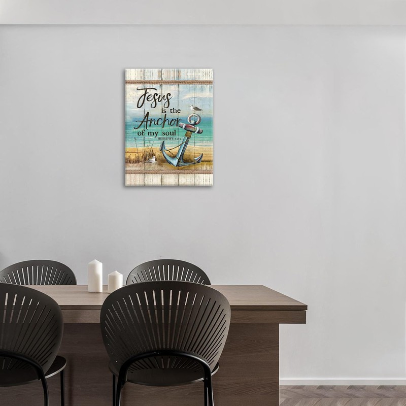 Christian Beach Anchor Wall Art Scripture Coastal Nautical Canvas Print Painting Bible Verses Pictures Framed Christian Gifts Artwork Dining Living Bathroom Bedroom Decor for Home Office 8"x12"