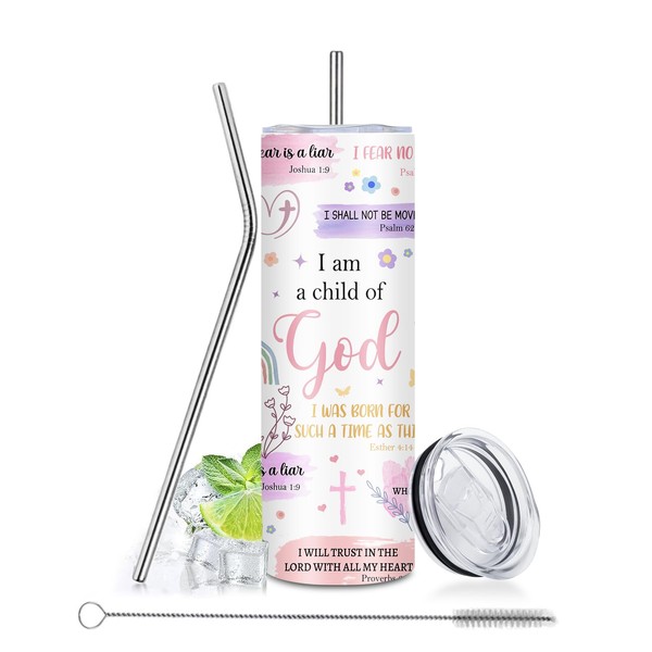 Christian Gifts for Women Tumbler 20oz I Am a Child of God Cup Tumbler, Inspirational Religious Birthday Catholic Spiritual Baptism Confirmation Gifts, Christian Coffee Mugs, Bible Gift for Women