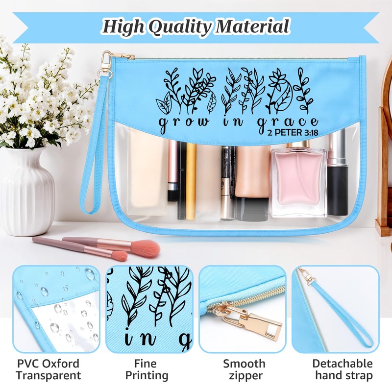 Christian Scripture Gifts for Women Blue Makeup Bag Bible Verse Inspirational Christian Quote Gifts Religious Christmas Decorations Cosmetic Travel Bag Organizer