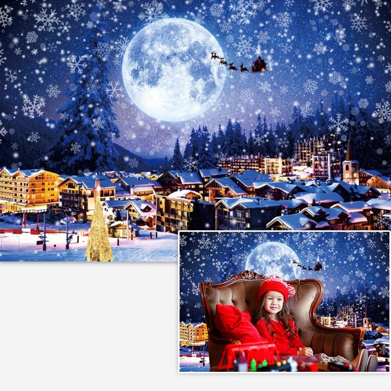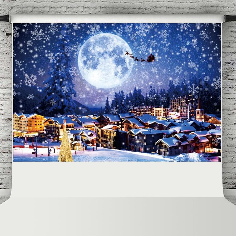 Christmas Backdrop Village Winter View Forest Background Trees Snowing Shining Merry Christmas Banner Kids Children Adults Photo Studio Props10x8ft