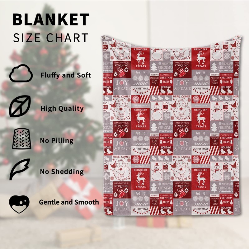 Christmas Blankets, Cuddly Blanket, Red, Soft Warm Winter Blankets, Christmas Plush Bedspread Cover for Adults and Children (Christmas A, 130 x 150 cm)