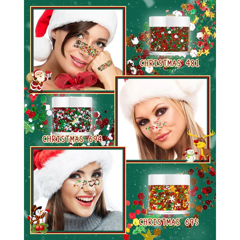 - Perfect Gift - Our chunky glitter gels are very shiny and are made with high intensity pigments and holographic gloss, great gift Idea, our travel-sized glitter gel is perfect for gift-giving. Use it for bold and creative makeup ideas that can be given to your friends, wife as a Christmas makeup gift.
