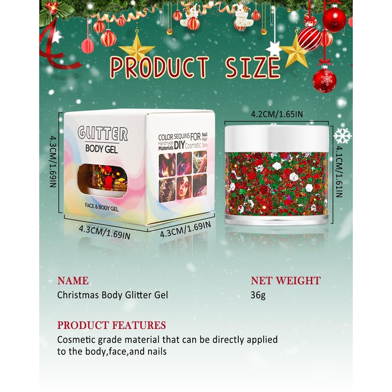 Christmas Body Glitter Gel, Red Green Gold White Face Glitters Body Gel Sequins Shimmer Liquid Eyeshadow, Chunky Glitter for Face Hair Body Nails, Mermaid Sequins Laser Powder Festival Glitter Makeup
