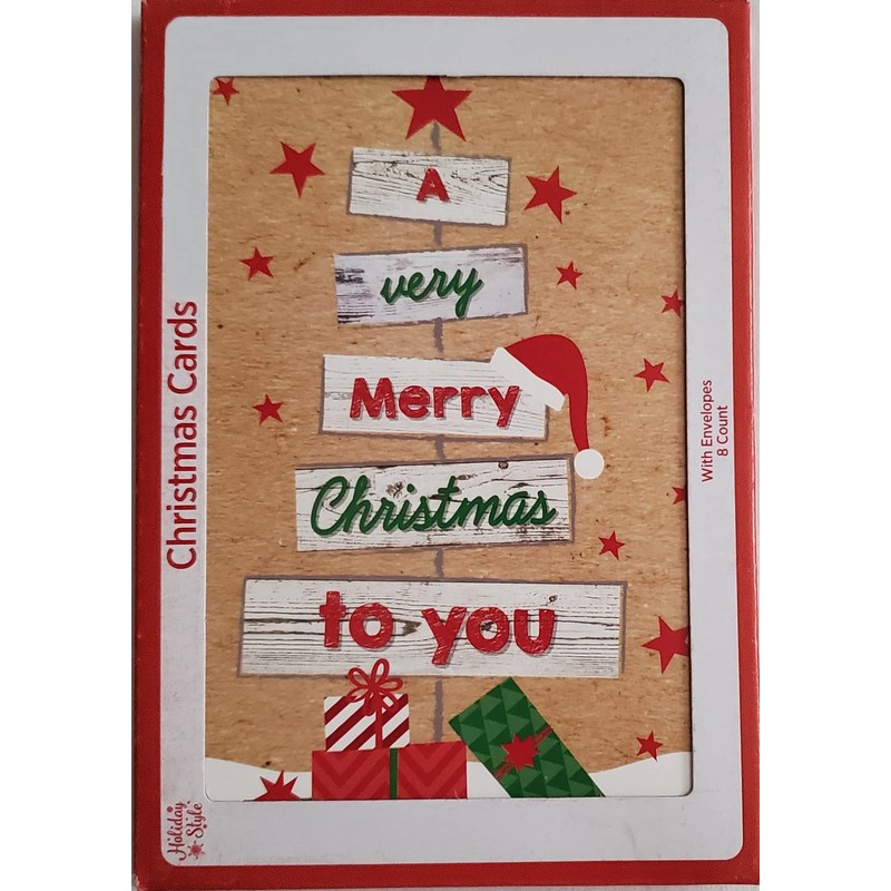 Christmas Boxed Cards Wooden Tree with Presents 8 Count