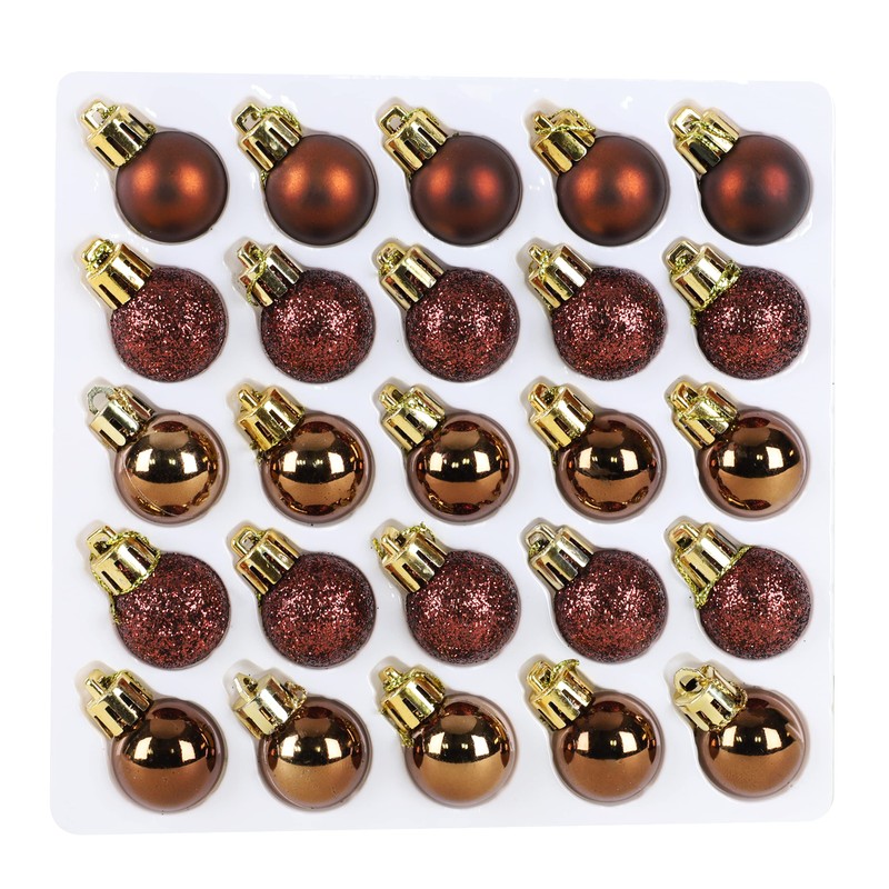 - This pack contains 25 mocha brown baubles in total, including an assortment of glitter, matte and shiny designs.