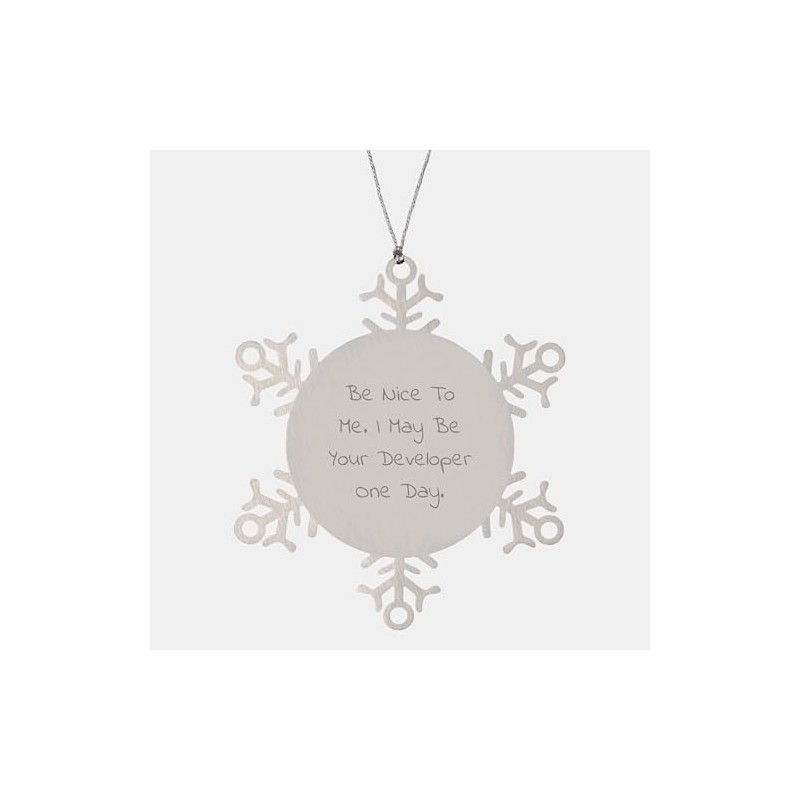 - Order your Be Nice To Me. I May Be Your Developer One Day. Snowflake Ornament today and make a lasting impression this Christmas.