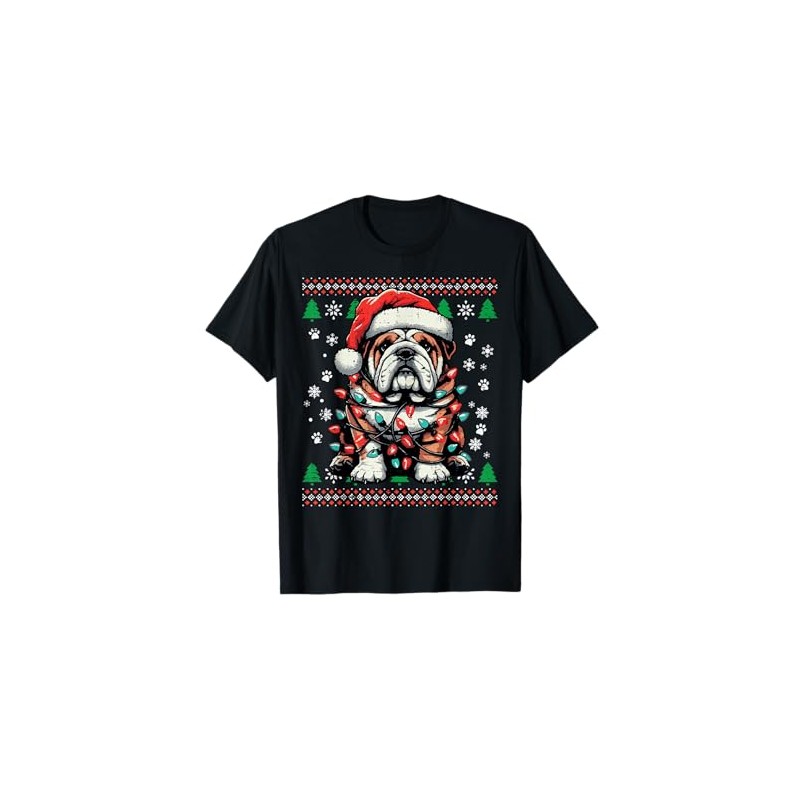 - This funny Christmas Dog English Bulldog Santa T-Shirt is the perfect gift idea for men, women, kids, boys, girls, adults & teens! Wear this xmas PJ christmas pajamas costume clothes outfit tee at the next Christmas party or Christmas movie night
