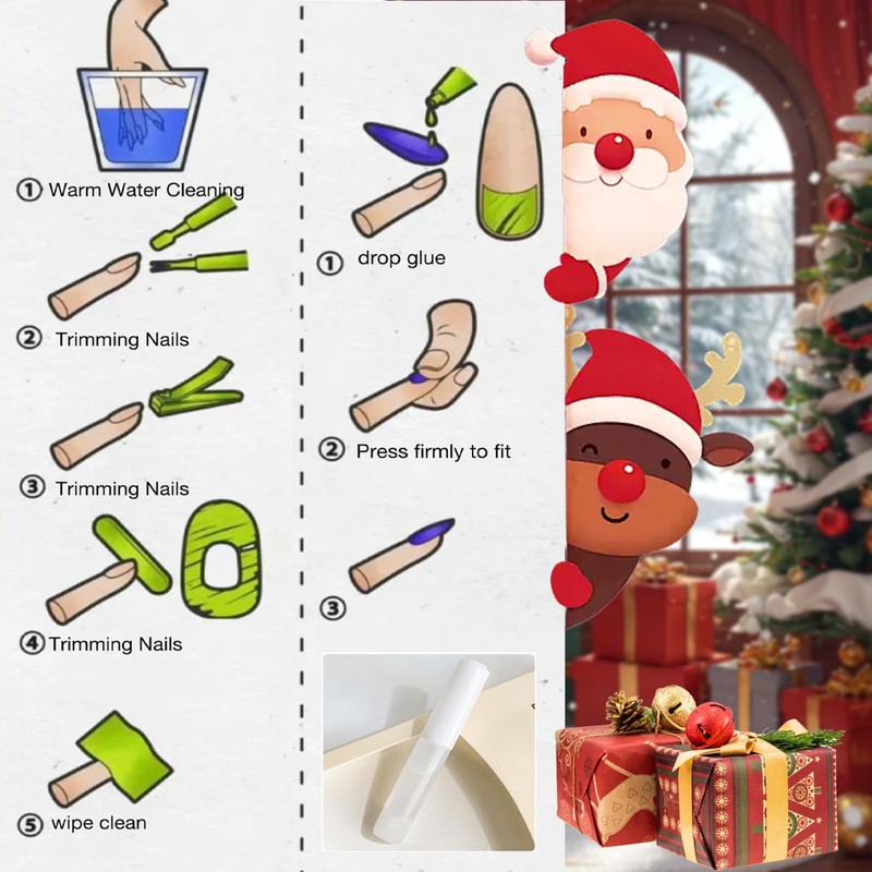 - 【Easy and Convenient to Wear】The wearing process of Christmas wearing nails is simple and quick, just clean your nails, choose the right nail piece, apply glue and stick it on easily, usually a few minutes to complete a pair of nails wearing, saving time and money.
