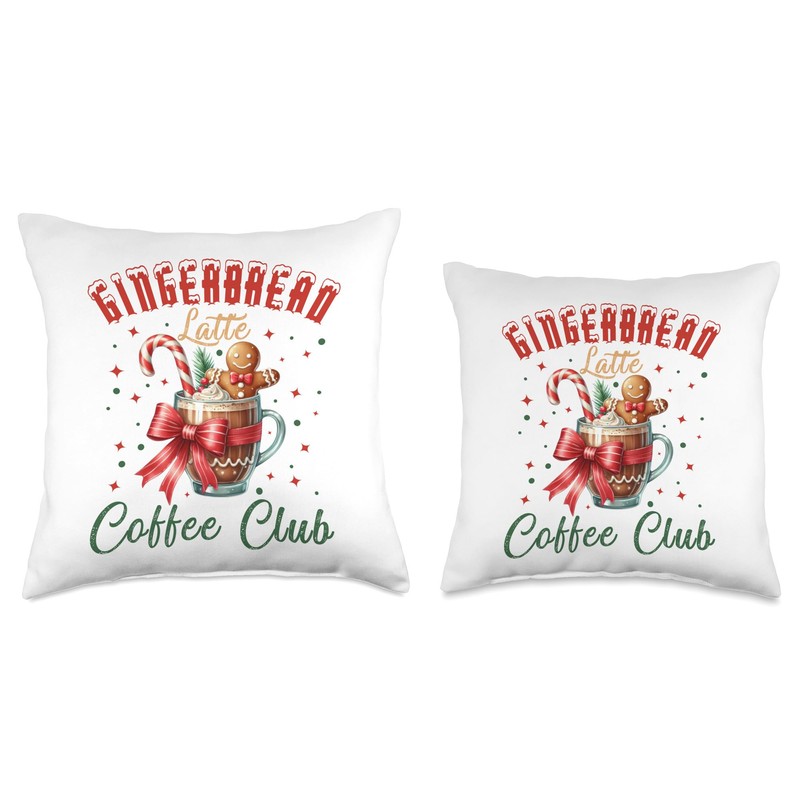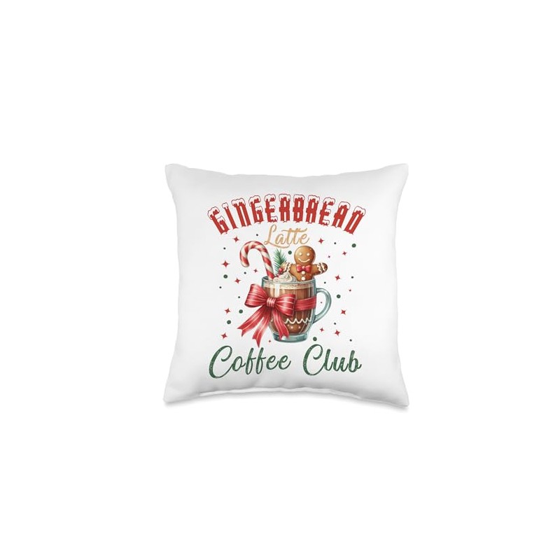 Christmas Farm Fresh Gingerbread Latte Coffee Club Winter Throw Pillow