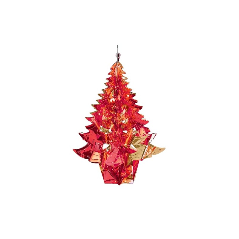 Christmas Foil Ceiling Decorations - 30cm Tree and Ball Set - 2 Tone Red/Gold