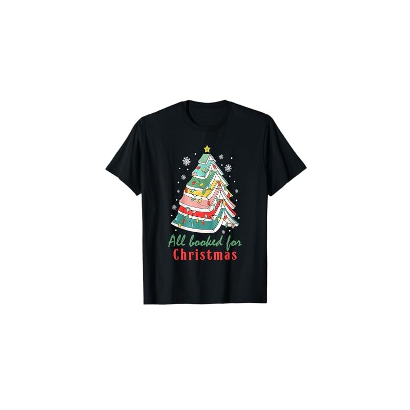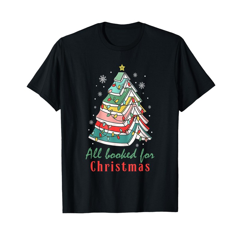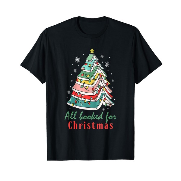 Christmas for Book Readers Book Worm Pun All Booked T-Shirt, black