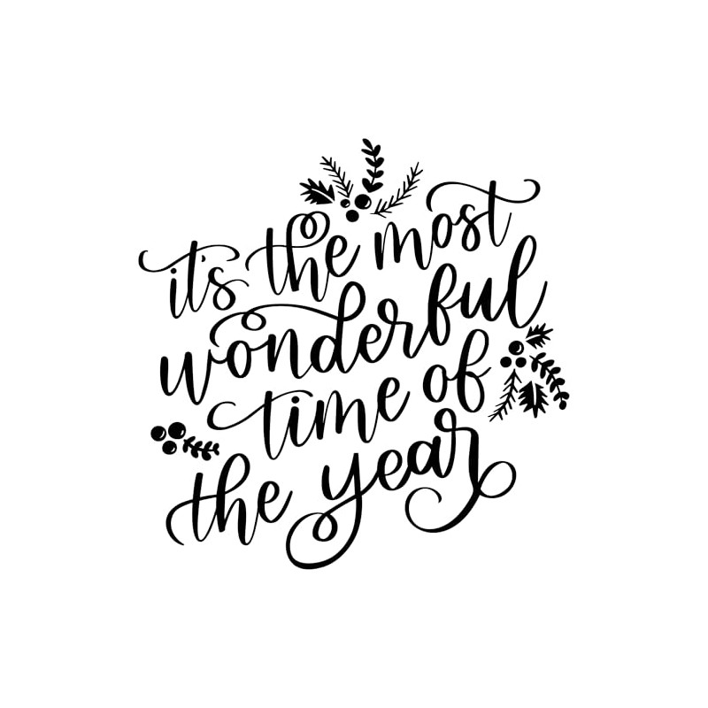 Celebrate the holiday season with this charming wooden rubber stamp featuring a delightful Christmas sentiment in elegant calligraphic lettering. The stamp's design showcases the phrase "It's the Most Wonderful Time of the Year" surrounded by festive holly leaves. With its black handle, this stamp is perfect for adding a handmade, festive touch to your holiday card making, scrapbooking projects, gift wrapping, and more. Crafted from sustainable North American wood and 100% renewable resource red rubber, this stamp ensures crisp and clear impressions every time. Bring the warmth and cheer of Christmas into your crafting endeavors with this delightful stamp.