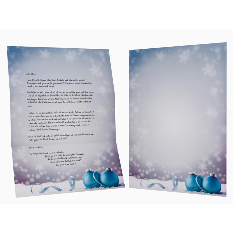Christmas Letter Paper | Christmas Baubles in the Snow | 100 Sheets Christmas Motif Paper DIN A4 | Writing Paper