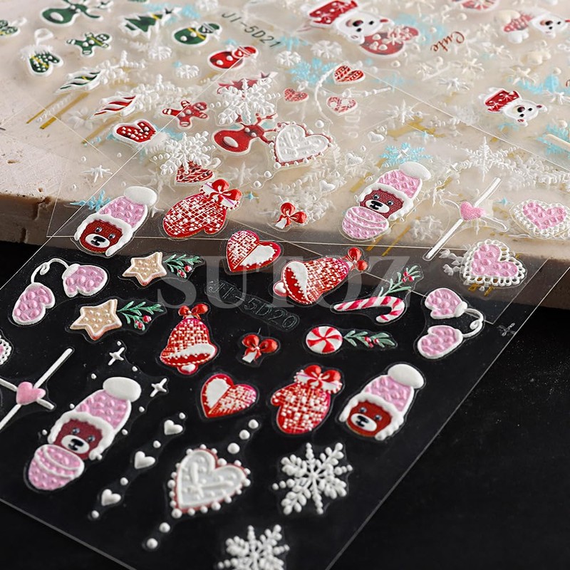 - 【Nails Art Design】Christmas nail art designs, including different theme styles,such as Christmas decoration themes, Christmas nail art decoration.5D nail art stickers are very suitable for girls and women's fashion styles, satisfying your beautiful imagination of Christmas.
