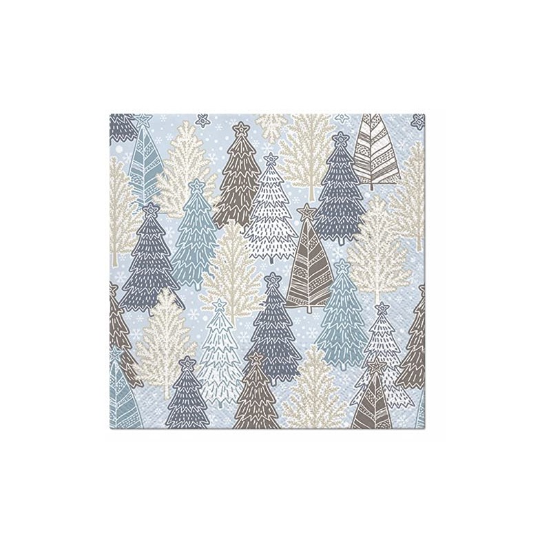Christmas Napkins GLITTERY SPRUCES Lunch Napkins 40pcs, Blue and Beige Trees in Forest, Paper Napkins for Decoupage, Napkins for Decoupage, Christmas Paper Napkins, Decorative Napkins for Decoupage
