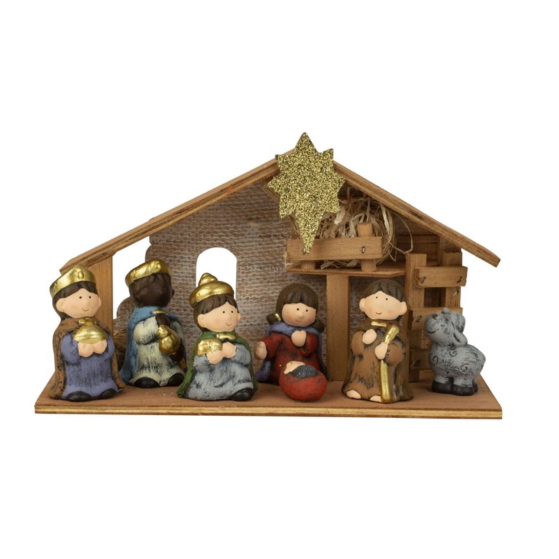 Christmas Nativity Scene Christmas Table Nativity Scene with Figures, 8-Piece Set Including Light Nativity Scene Comic Wood (Set of 8)