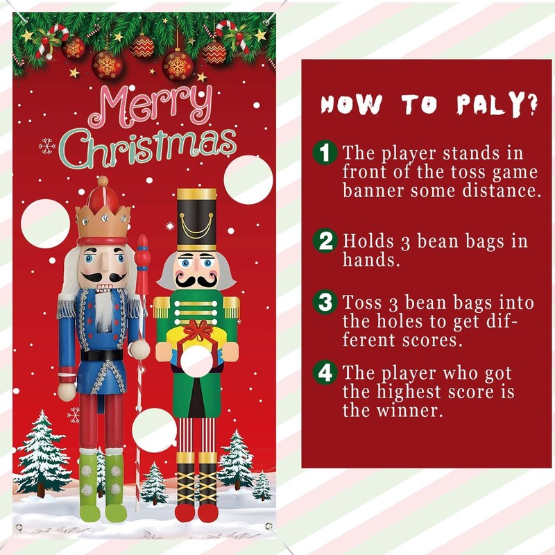 - Christmas Party Toss Game Size: Our Nutcracker banner measures 55 x 27.5 inches. When not needed, just fold the banner for storage with a small footprint.