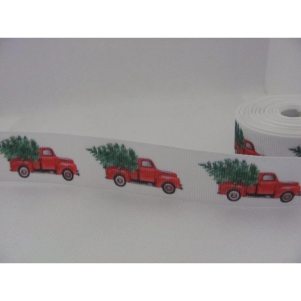 Christmas Old Truck Tree 1 inch Grosgrain Ribbon White