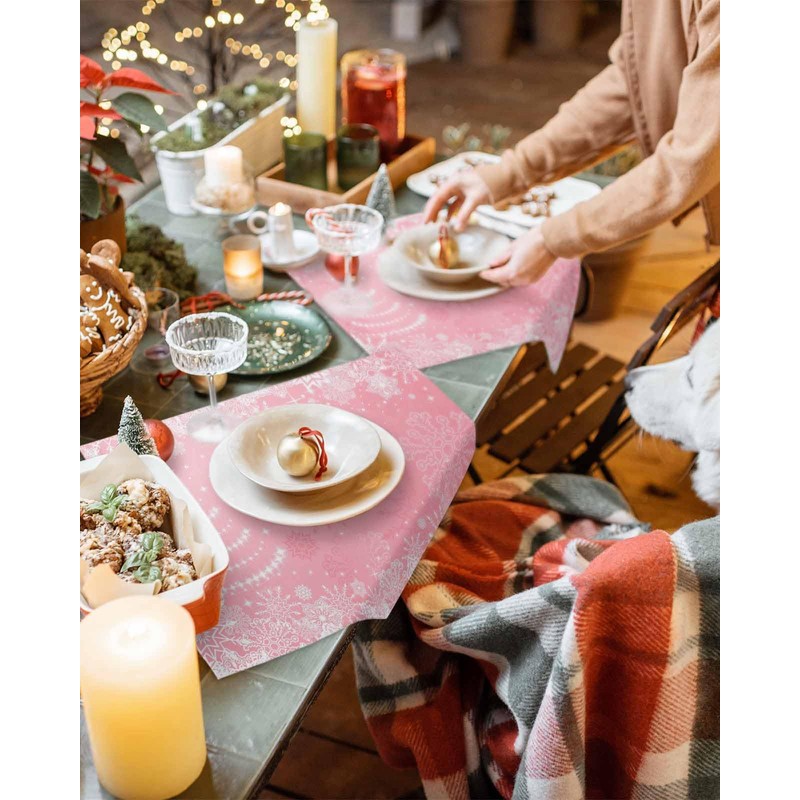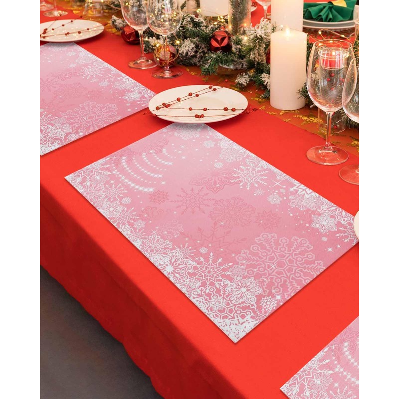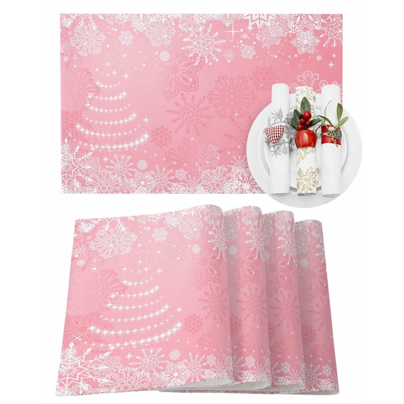 - Elegant Design: Stylish placemats are a great addition to your dining table, dining table or coffee table decor. Because the beautiful patterns of pink Christmas snowflakes and Christmas trees fill the festive atmosphere, these mats are perfect for any table.