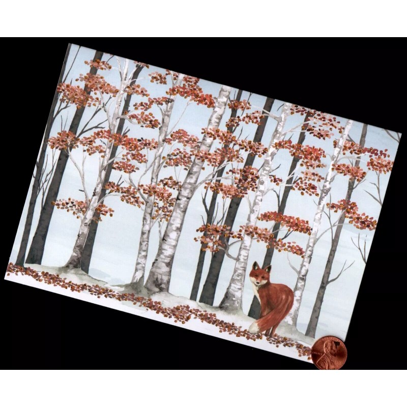 Christmas Red Fox Trees Leaves Branches COPPER SHINE - Greeting Card W/ TRACKING