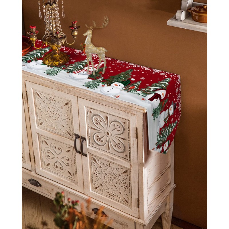 - SIZE: 13x60in(About33x153cm). Printed with winter snowy Xmas tree and snowman design!