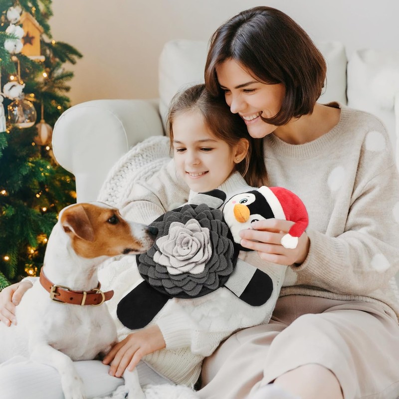 Christmas Squeaky Dog Toys, Plush No Stuffing and Snuffle Mat for Dog Puppy, Durable Chew Bite Toys for Small Medium Large Dogs, Interactive Xmas Penguin for Aggressive Chewers