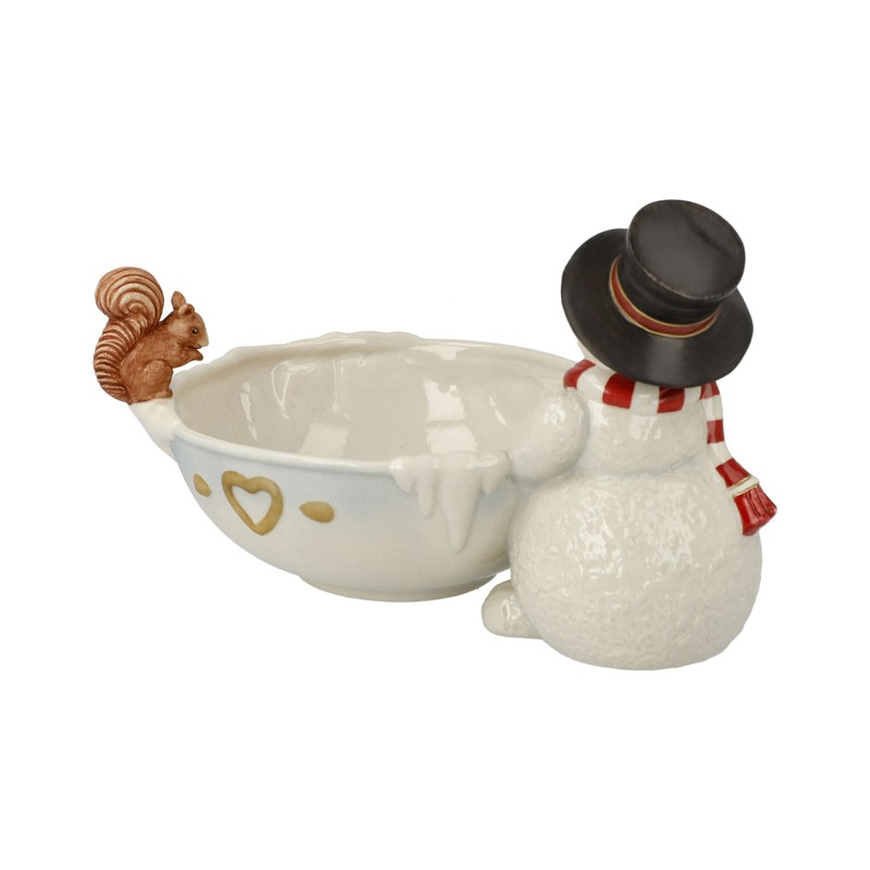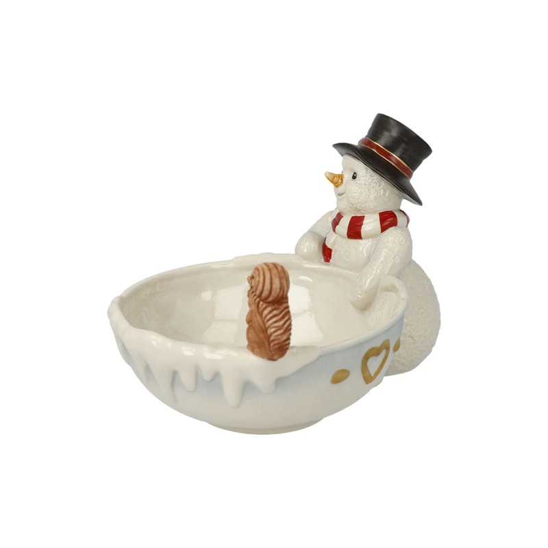 - Beautiful decorative figure with bowl for treats, snowman and squirrel