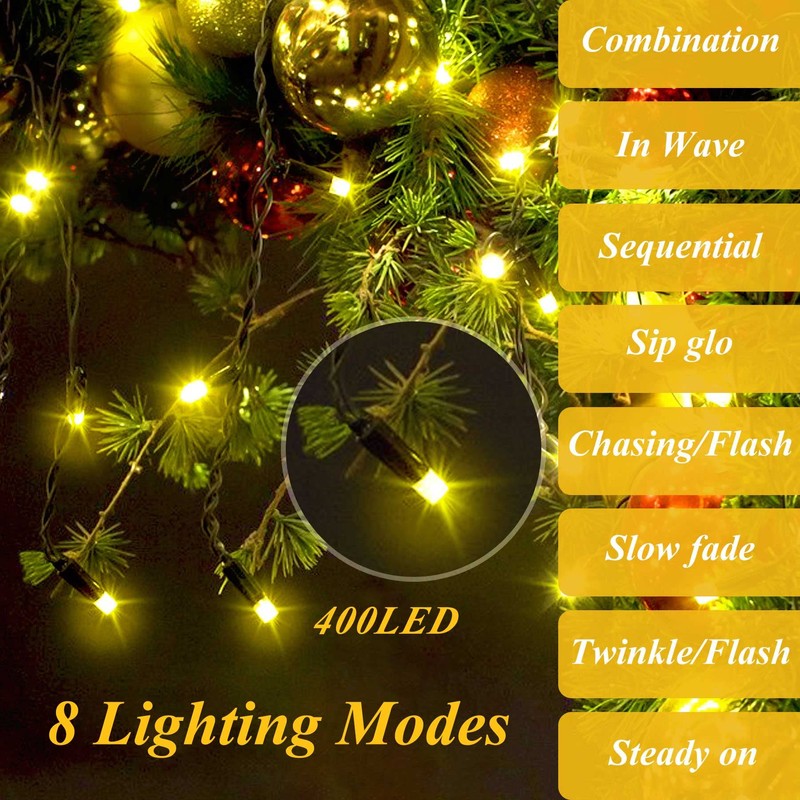 Christmas Tree Lights 400 LEDs, aneeway Christmas Lights with 8 Light Modes & Memory Function, 6.6FT x 16 String Lights with Timing Function & Remote Control for Christmas Ornaments -Warm White