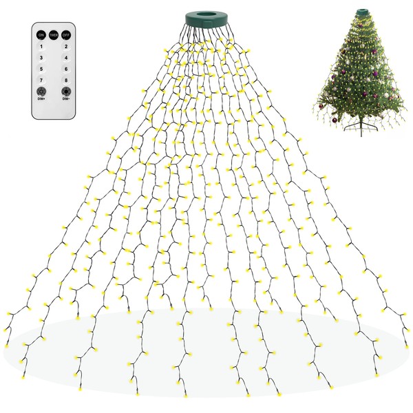 - 🎄【Reasonable Design, Easy to Install】The Christmas decor light has 16 light strings, each line is 6.6ft (2m) long and equipped with 25 LEDs, a total of 400 LEDs. There is a mounting ring on the top of the Christmas lights, just fix the ring on the top of the Christmas tree and let the 16 string lights hang down from the tree to finish installation. The 16.4ft(5m) power line allows you to place the tree lights anywhere, just enjoy a wonderful fairy light show!