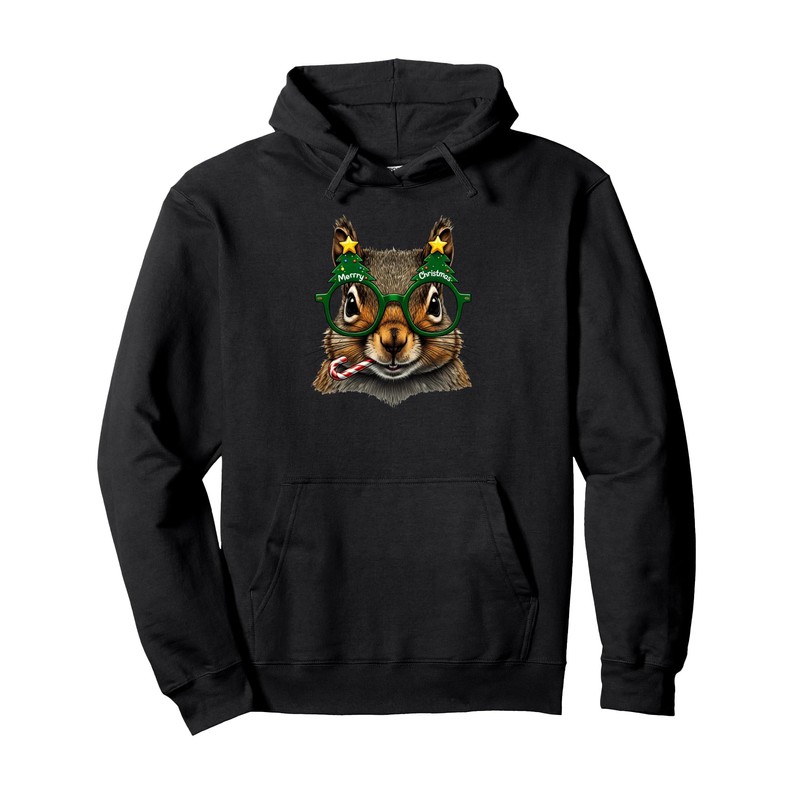 Christmas Tree Sunglasses Squirrel Candy Cane Mens Womens Pullover Hoodie