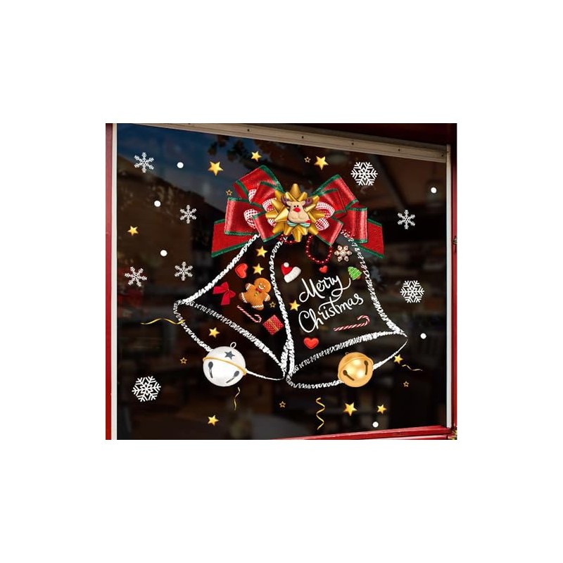 Christmas Window Clings Stickers Christmas Bow Knot Bell Garland Wreath Santa Claus Crystal Ball Clings Decals for Windows Doors (Bells)