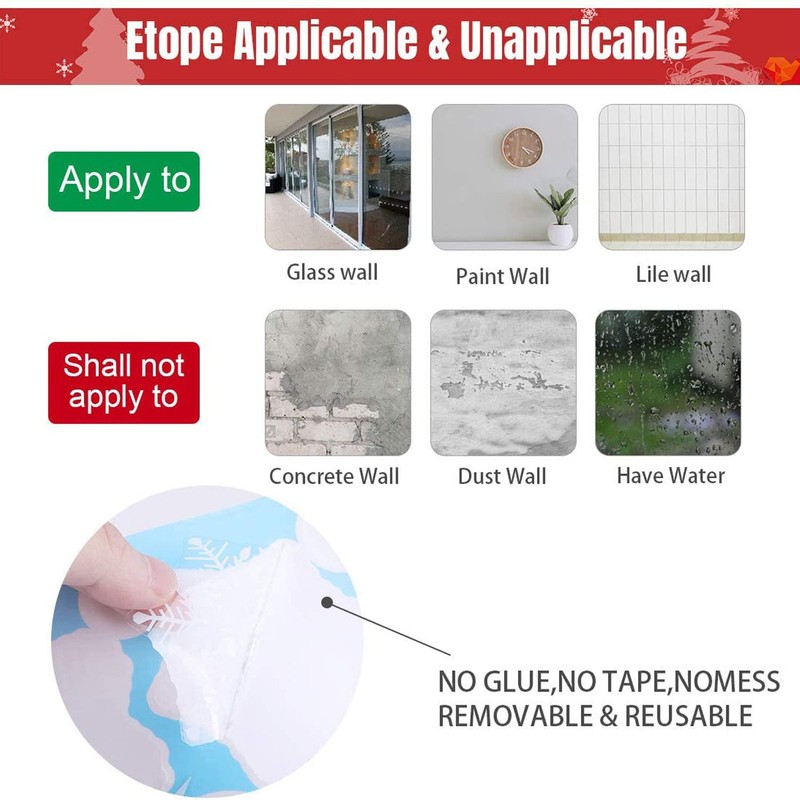 • 🌿【Easy to Use & Remove】Just clean the smooth surface and spray some water, then peel off the Xmas window stickers and stick it on, done! There were no air bubbles either if you use scraper. Christmas window stickers can be peeled off really easy, and those Christmas window decorations stickers leave no sticky residue on your windows ! You can decorate your windows year after year !