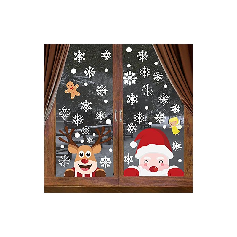 - 🎄【Size】 Christmas Window Clings With The Most Popular Christmas Image: Santa Claus, Reindeer, Snowflake, Snowman.The size of each Christmas sticker is 20cm*30cm/8.3*11.4 inches. They are the best choice for Christmas decoration of doors and windows