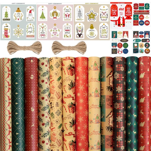 - Wide Applications: This set not only offers Christmas wrapping paper rolls, but also versatile possibilities for application, be it for parties, celebrations, birthdays or anniversaries. The 12 sheets of Christmas paper are perfect for decorating your gifts for any special occasion. With additional jute string and stickers, it allows for customisation and adds a personal touch to any gift. It is the optimal choice for creative minds who value aesthetics and diversity of detail.