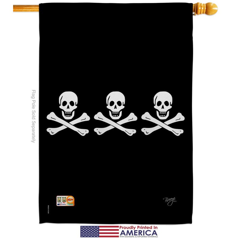 Christopher Condents Garden House Flags Kit Coastal Pirate Ship Skull Treasure Map Carribean Jolly Blackbeard Jack Small Decorative Gift Yard Banner Made In USA 28 X 40