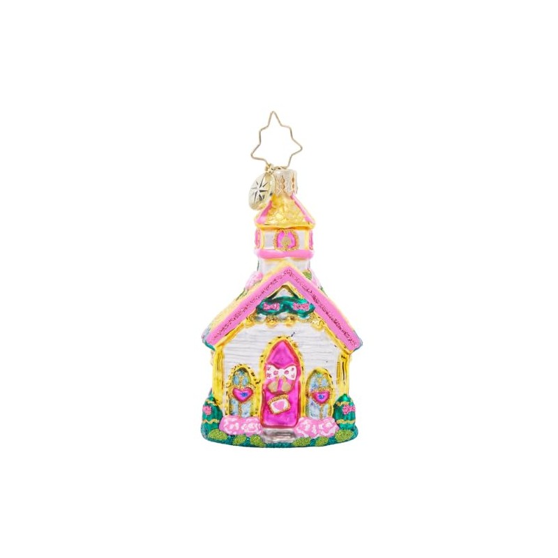 Christopher Radko Hand-Crafted European Glass Christmas Tree Decorative Ornament, Charming Wedding Chapel Gem